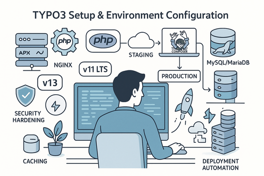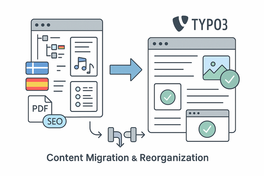 Before beginning a migration, it’s essential to understand the full scope of your existing digital infrastructure. This includes analyzing the structure of your current CMS, content organization, integrations, and any third-party tools. At AashroTech, we begin with a comprehensive technical audit. This includes assessing URL structures, metadata, internal linking, user roles, backend workflows, content types, media libraries, and SEO-critical components. The goal is to document every detail of your current setup to ensure nothing is lost during the migration. We also assess pain points and inefficiencies that TYPO3 can resolve.